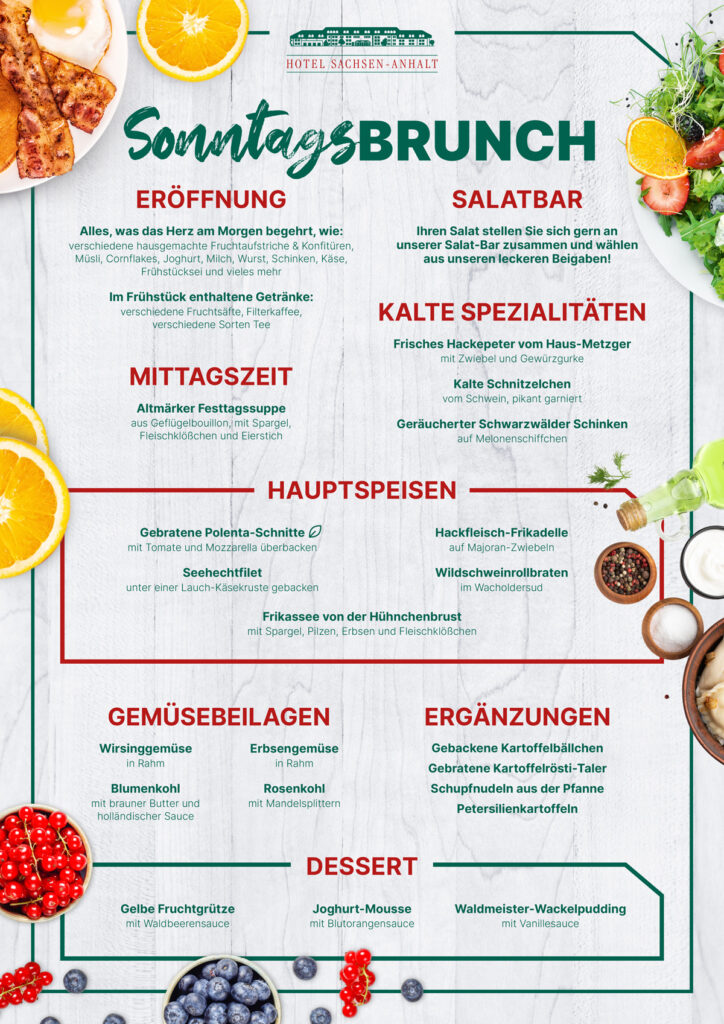 Am 25.01.2026 ab 09:00 Uhr findet mit unserem Sonntagsbrunch zum Preis von € 24,90 pro Person (Kinderermäßigung auf Anfrage) unsere erste öffentliche Veranstaltung im neuen Jahr statt. Tischreservierungen sind ab sofort möglich und einen Vorgeschmack auf das Buffet gibt es natürlich auch:
